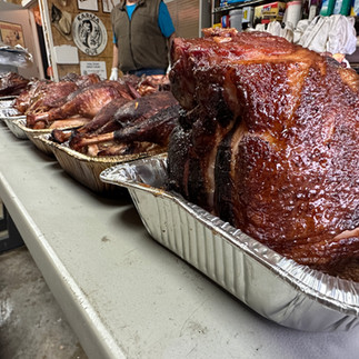 The day before Thanksgiving this year KarmaQue was hard at work manning the smokers preparing turkeys and hams for this years Thanksgiving fundraiser. But it's also about giving back: KarmaQue, at no charge, provided 20 local Marines a free ham to lessen the burden on Thanksgiving day.